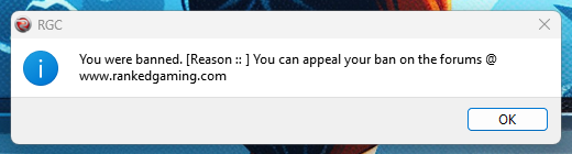 “ You ware banned. [Reason ::] You can appeal your ban on the forums @ www.rankedgaming.com”